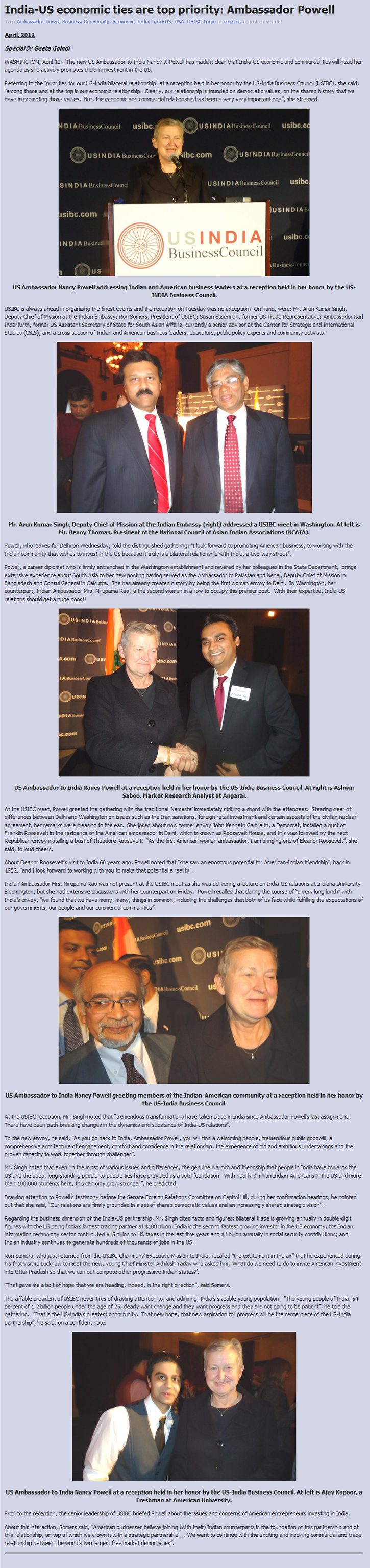 ANGARAI Welcomes US Ambassador to India Nancy Powell.
